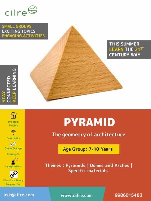 Pyramid is a workshop that focuses on the geometry of architecture. Children will build and explore some geometries that are used commonly in constructions like pyramids, domes and arches. They will also explore how geometry is used for designing buildings for specific purposes and with specific materials.